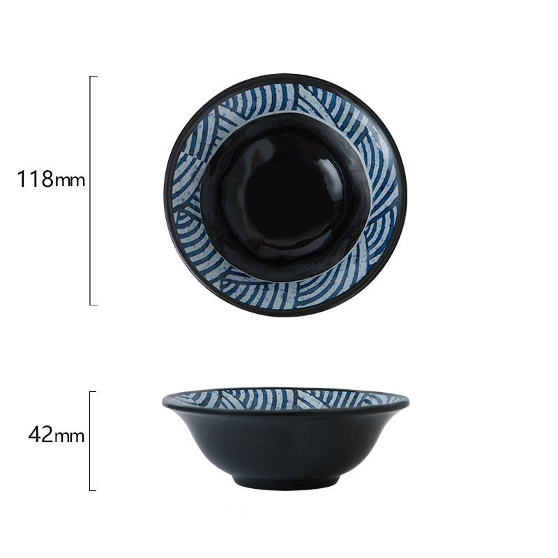 The design features the traditional Japanese seigaiha pattern, which symbolizes waves and good fortune. The intricate pattern adds a touch of elegance and sophistication to this footed bowl. With a capacity ranging from 160 to 350ml, it's the perfect size for holding small portions of your favorite appetizers or desserts.