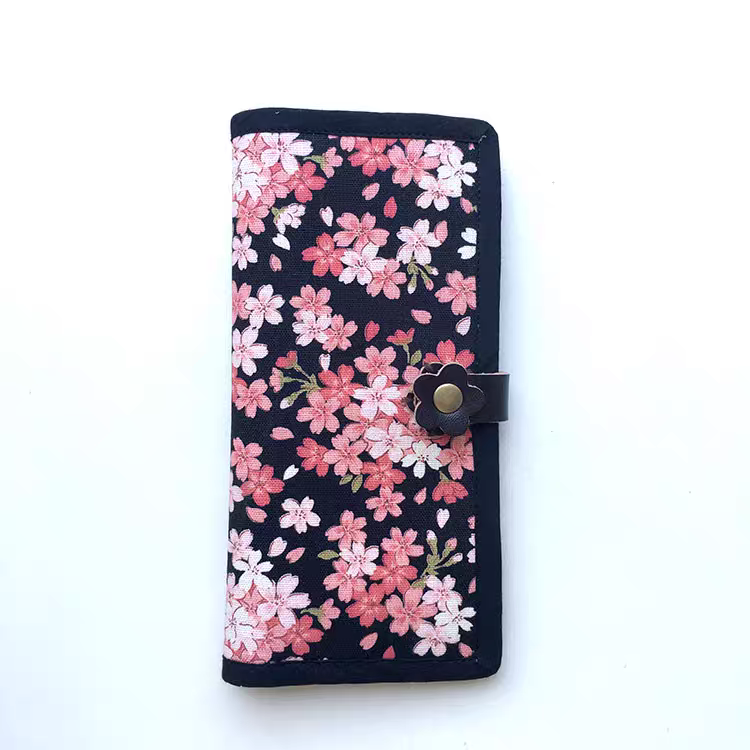 Handmade Japanese Pink Sakura Long Fabric Wallet